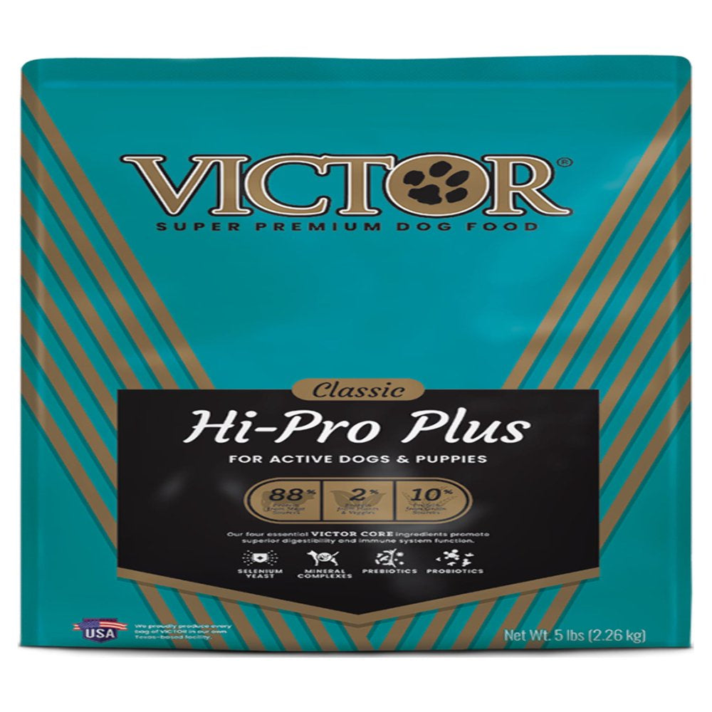 - ACTIVE DOG FOOD: VICTOR s Hi-Pro Plus formula is a gluten free, high protein dog food with a nutrient-dense, multi meat formula; this dry dog food s super premium nutrition provides sustained energy for sporting dogs and dogs with high physical demands