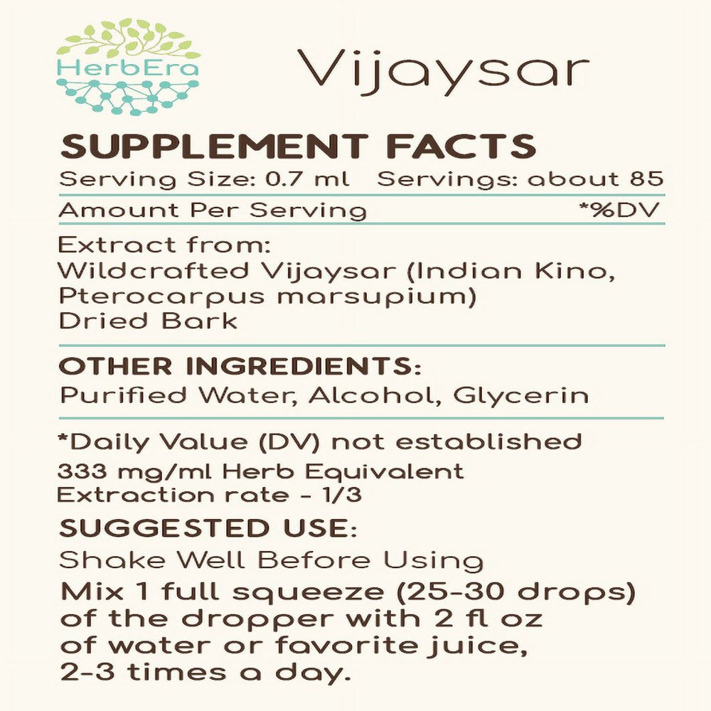 Vijaysar Alcohol Herbal Extract Tincture, Super-Concentrated Wildcrafted Vijaysar (Indian Kino, Pterocarpus Marsupium) Dried Bark 2 Oz - Alcohol / 2 Fl Oz is backordered and will ship as soon as it is back in stock.