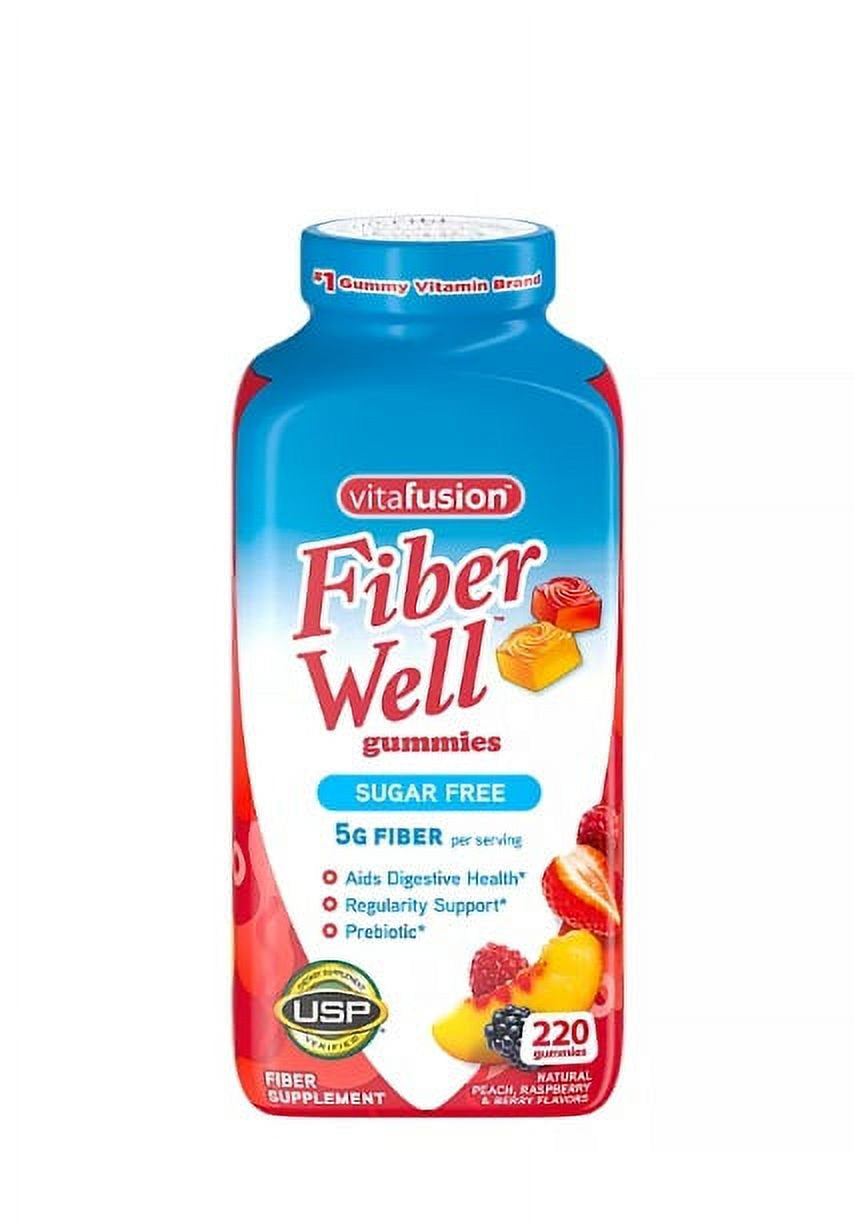 Gummy fiber supplement 5 grams of fiber per serving Delicious natural flavors: peach, strawberry and blackberry Gluten-free and sugar-free America's #1 gummy vitamin brand