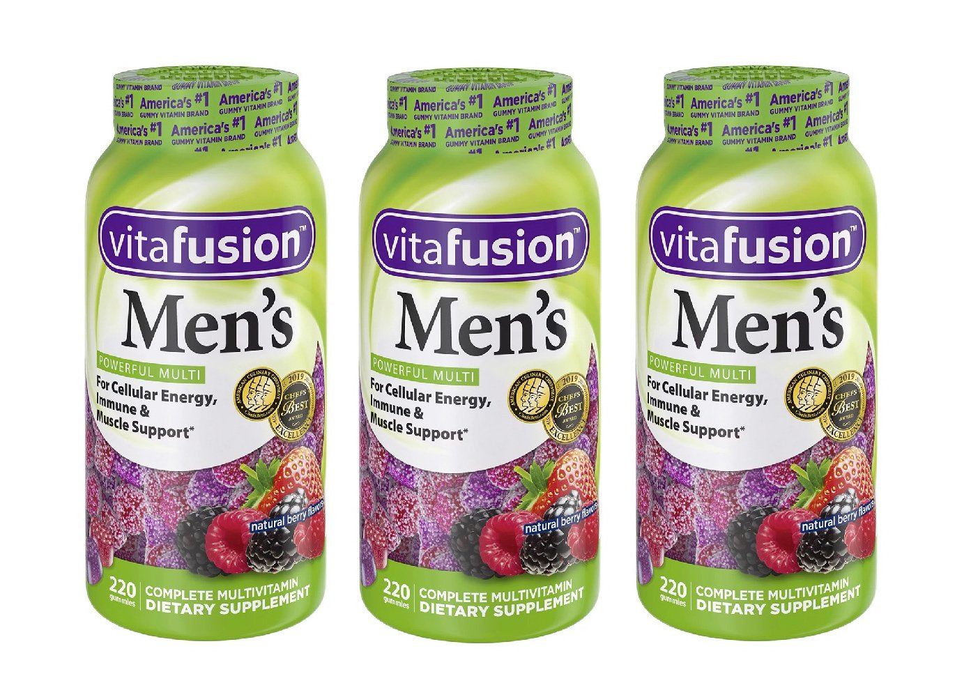 Description Begin your day and end your night with the nutritional Vitafusion Men's Multivitamin Gummies. This 220-count gummy container offers a variety of fruit flavors. Use them as a supplement to ensure you get the micronutrients you need!