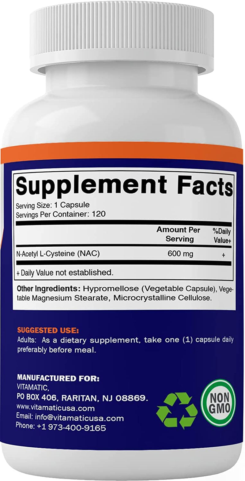 Vitamatic NAC N Acetyl L-Cysteine 600 Mg 120 Veg Capsules