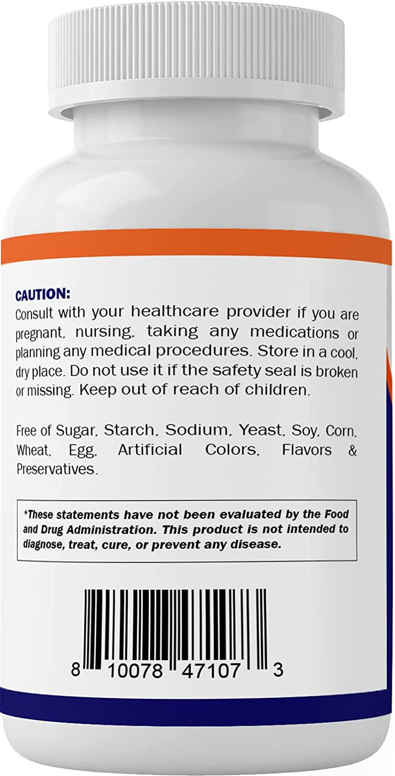 - Free of Starch, Sodium, Soy, Yeast, Corn, Wheat, Egg, Artificial Color, Flavor & Preservatives.