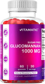 Vitamatic Sugar Free Glucomannan Gummies (Amorphophallus Konjac Root) - 1000Mg per Serving - Natural Strawberry Flavor - 60 Gummies