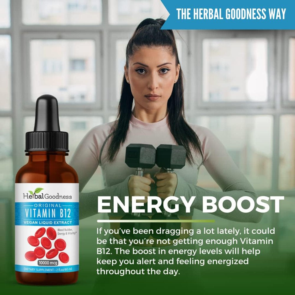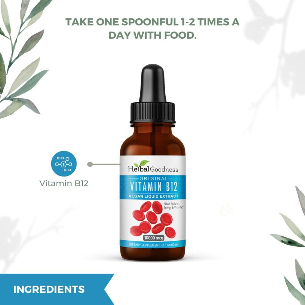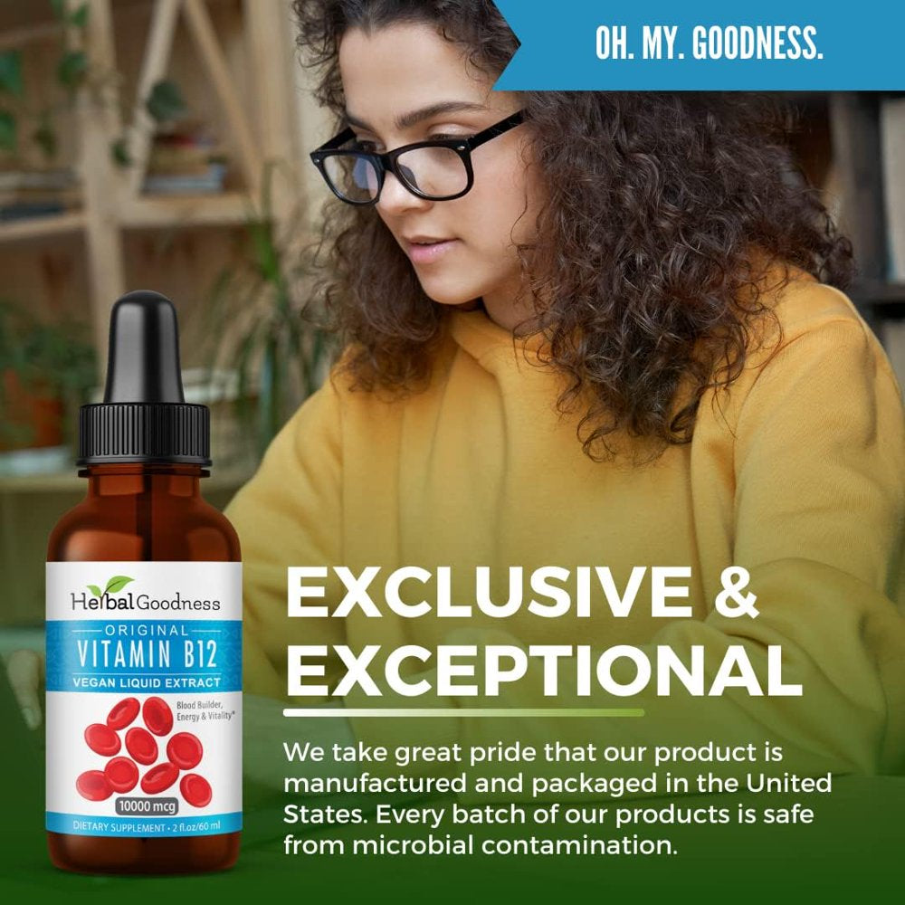 Vitamin B12 Methyl 10,000Mcg Liquid Extract Vegan Formula - Sublingual Blood Builder - Energy and Vitality, Original Methylcobalamin USA Made - Herbal Goodness