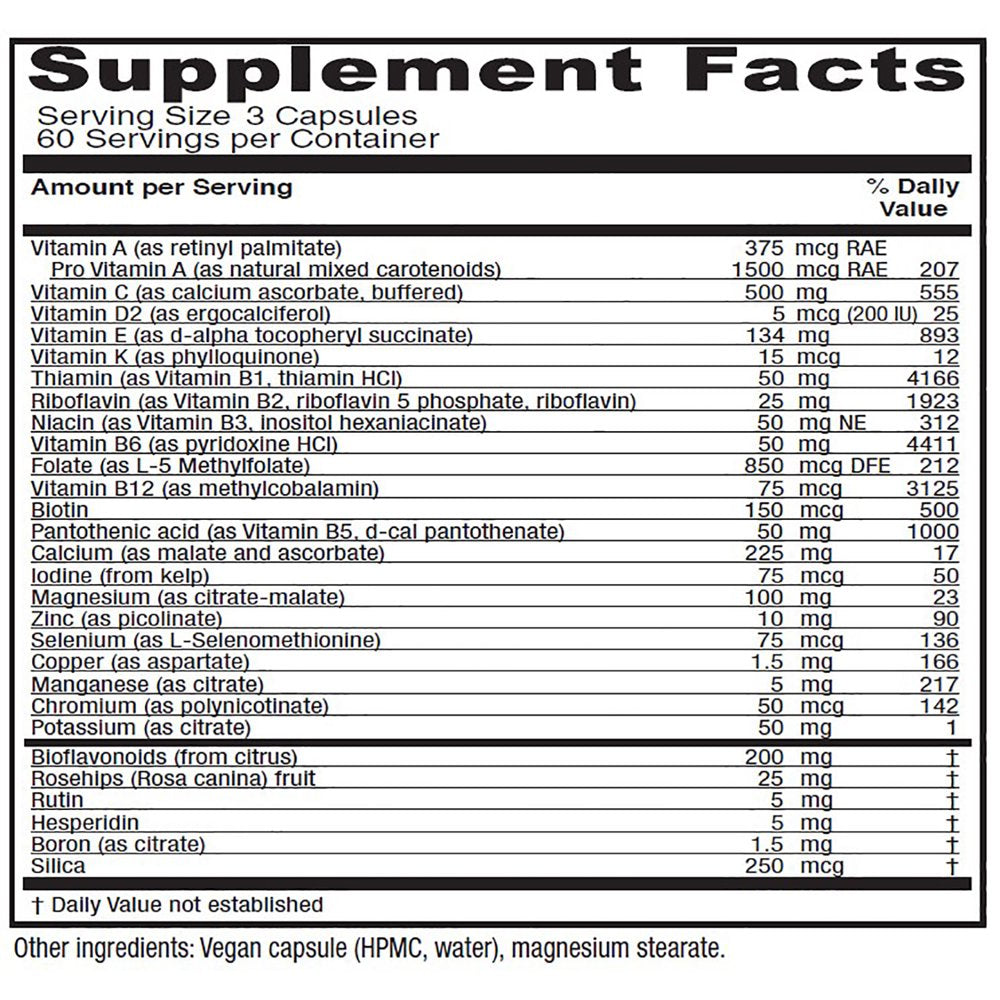 Women’s Symmetry® ~ High Potency Multivitamin and Mineral: Like all our multiples, this is a hypoallergenic, preservative-free, high potency multivitamin and mineral supplement designed to support the nutritional needs of women in their 20’s, 30’s and 40’s.* Featured Ingredients: This is an Iron-free multivitamin because not all women need to take iron. Iron can add pro-oxidative stress if it’s in excess, so we left it out. Bioflavonoids offer extra connective tissue and uterine tissue support. We utilize high quality ingredients and premium forms of the nutrients for better tolerability and to promote maximum bioavailability, including Methylated Folic acid (L-5-MTHF). Unique flexible dose makes it easy to use depending on what level of nutrient support women want or feel they need.