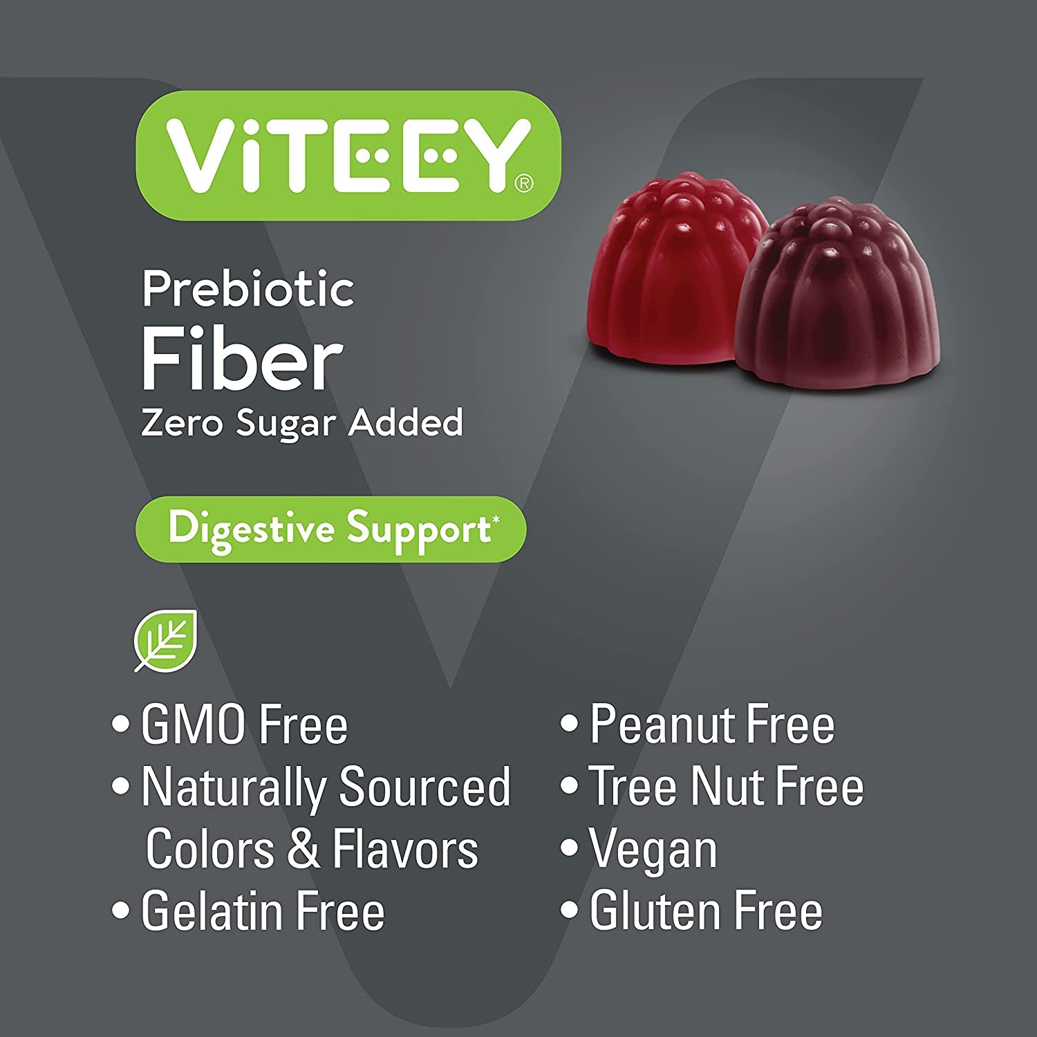 Viteey Fiber Prebiotic [Zero Sugar Added] Gummies - Digestive Heath Regularity Support, Natural Weight Support, Vegan Dietary Supplement, Good for Adults Teens & Kids - Fruit Flavored Pectin Gummy