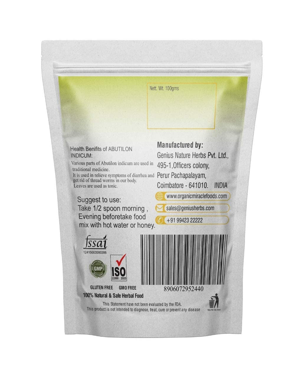 - Package content includes 100g of pure abutilon indicum leaf powder