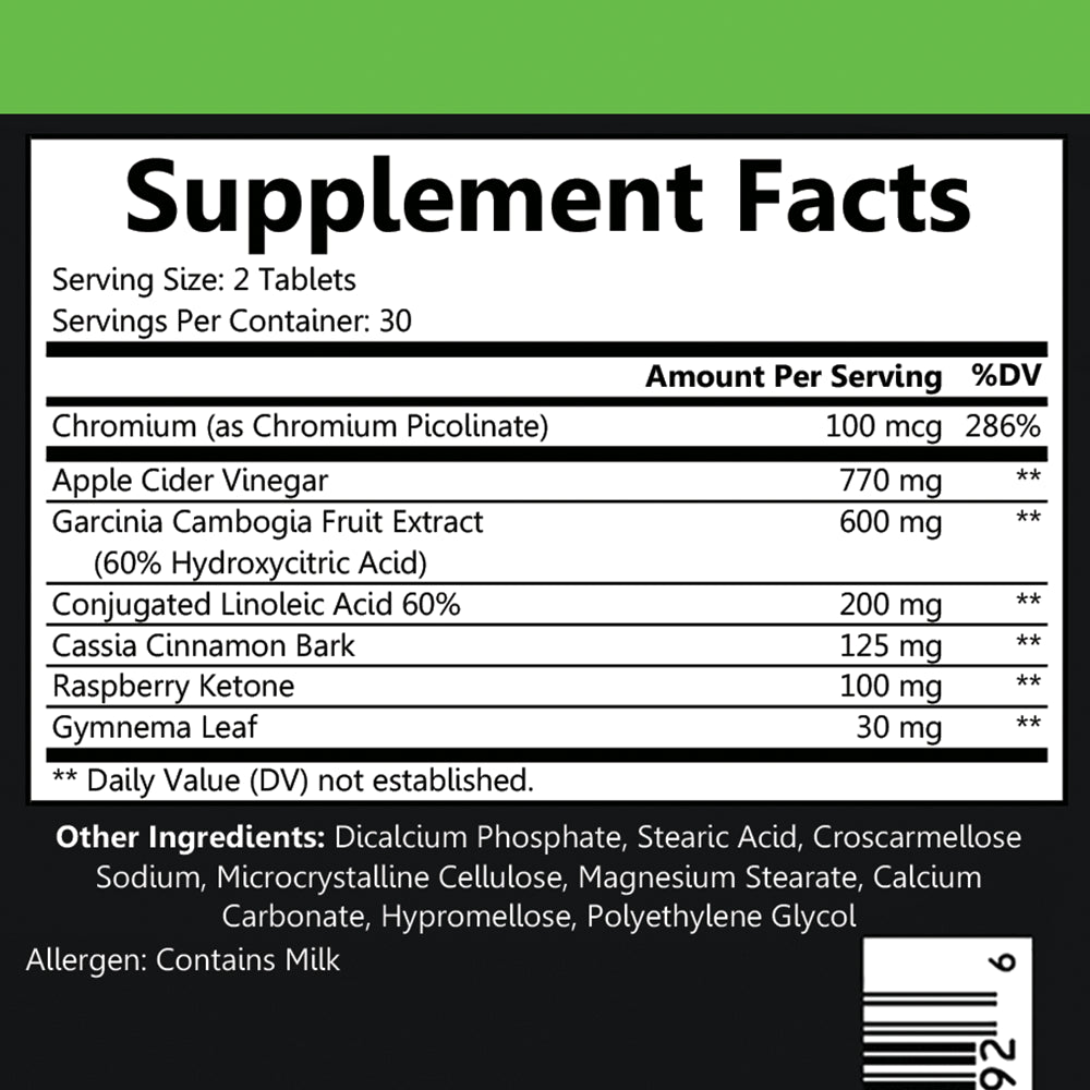 - FAT BURNING SYNERGY: Our proprietary formula includes Gymnema, Cinnamon, CLA, Raspberry Ketones, and of course Apple Cider Vinegar, so you will never have to worry about a lack of dietary support.