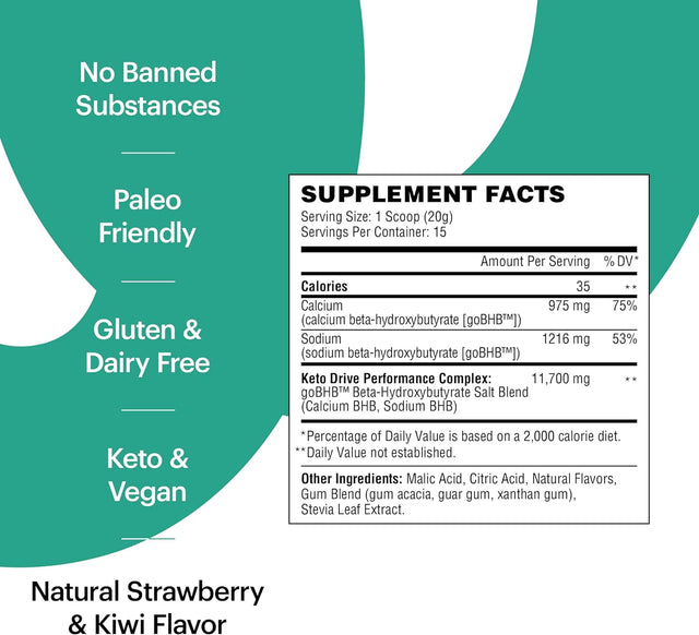 Wellthy Keto Power with BHB Salts for Instant Ketosis and Energy, Natural Strawberry Kiwi Flavor, 10.58 Oz