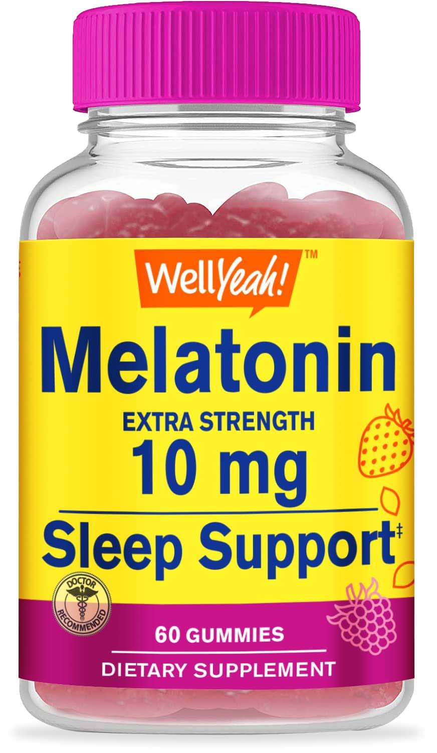 Wellyeah Melatonin 10Mg Gummies - 2 Month Supply - Natural Berry Flavor, Drug-Free Gummy Supplement - Gluten and Gelatin Free, Vegetarian - 60 Gummies
