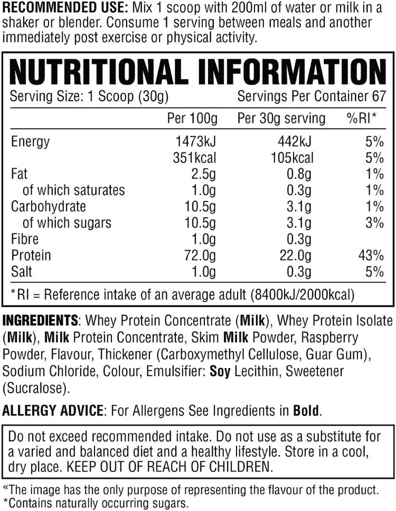Whey Advanced Protein Powder, 67 Servings of Delicious Muscle Building Protein, Raspberry White Chocolate, 2010G