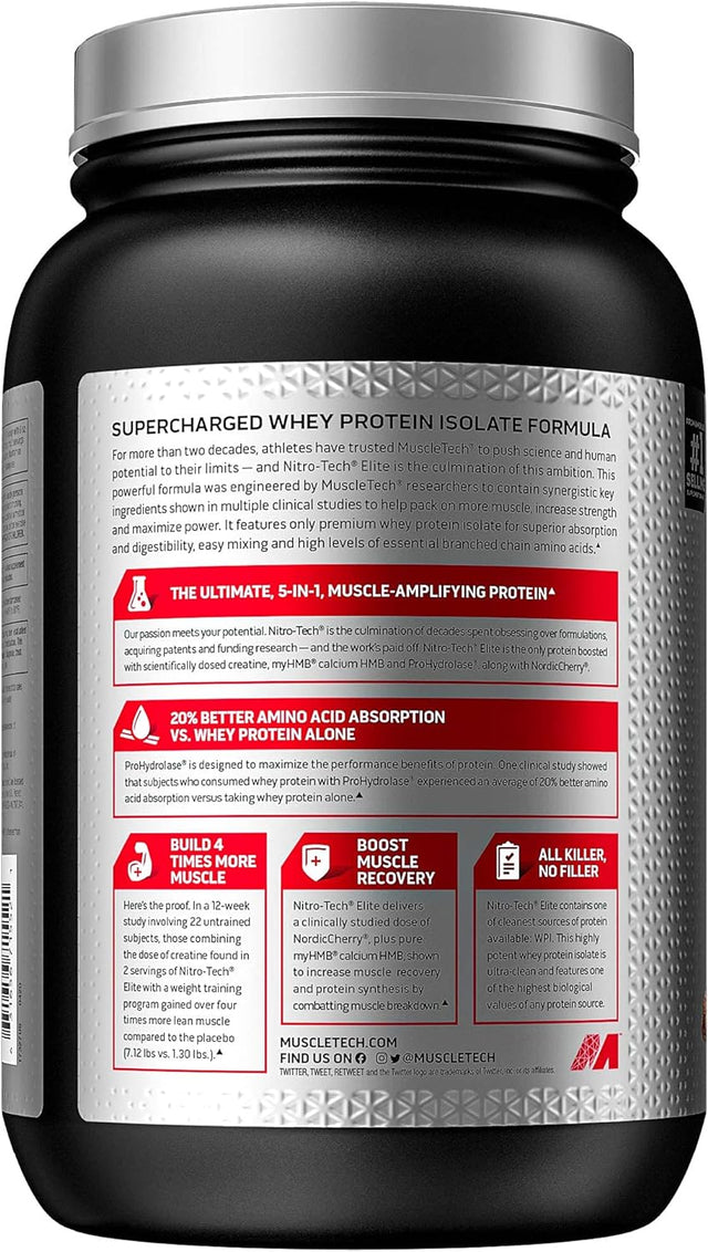 Whey Protein Isolate, Muscletech Nitro-Tech Elite Isolate, Whey Isolate Protein Powder for Muscle Gain, Protein Shakes for Men & Women, Muscle Builder, Belgian Chocolate, 2.2 Lbs (23 Servings)