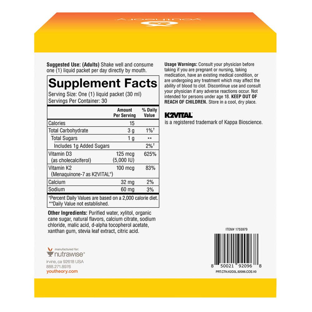 - SUPPORTS CALCIUM ABSORPTION: Youtheory K2D3 liquid packs combine K2 and D3 to enable the body to properly use calcium for normal metabolic function. vitamin K2 brings calcium to the bones and vitamin D3 ensures calcium is absorbed easily.*