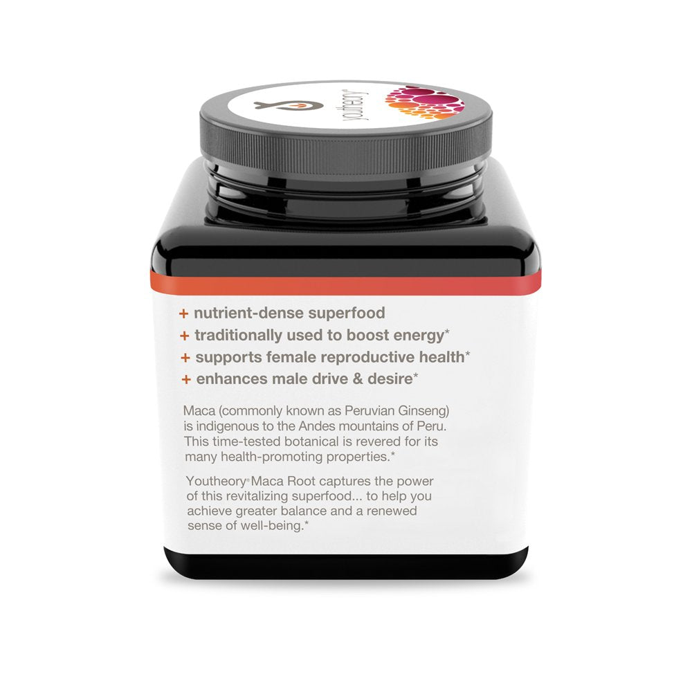 Feel more alive with Youtheory® Maca Root Advanced*. Maca (also known as Peruvian Ginseng) is a true nutritional powerhouse*. This superfood is classified as an "adaptogen" and is prized for its many health-promoting properties*. Youtheory® Maca Root contains true authentic Peruvian Maca that is harvested in the Andes Mountains and gelatinized to improve digestibility and absorption*.
