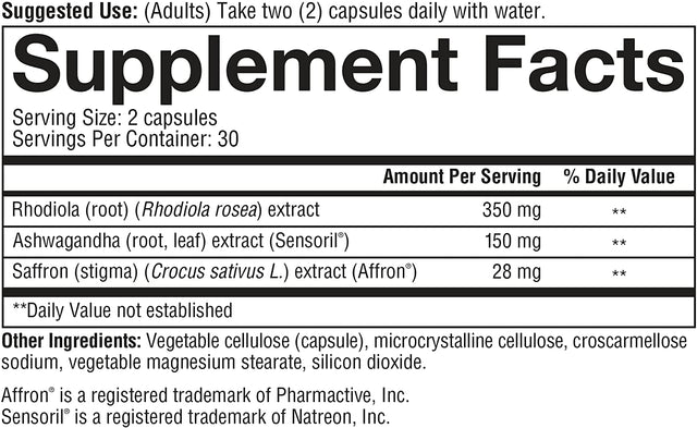 - SAFFRON ADVANCED SUPPLEMENT: Our supplement combines saffron, to help boost your mood, ashwagandha to help reduce the effects of stress, and rhodiola to boost mental performance.