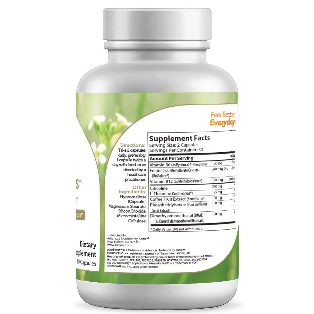 Designed to increase brain function, memory, focusing and concentration, Zahler's AdultFocus contains NeuroFactor, Citicoline, Sharp PS and more to boost the adult brain. What does AdultFocus target? Aging is a good thing, we all wait to get to the stage where we can look back at our accomplishments and share memories. However, in many cases, the adult brain can use a boost to work to its fullest. Whether it is the attention span, recall or just mental sharpness you are looking to boost, AdultFocus contains potent ingredients beneficial for optimal brain function.