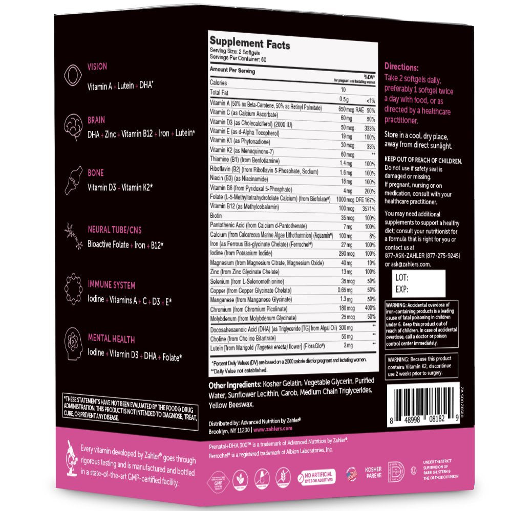 - ABOUT: Zahler Prenatal DHA is a complete prenatal multivitamin which includes 25 vitamins and nutrients plus 300mg of DHA