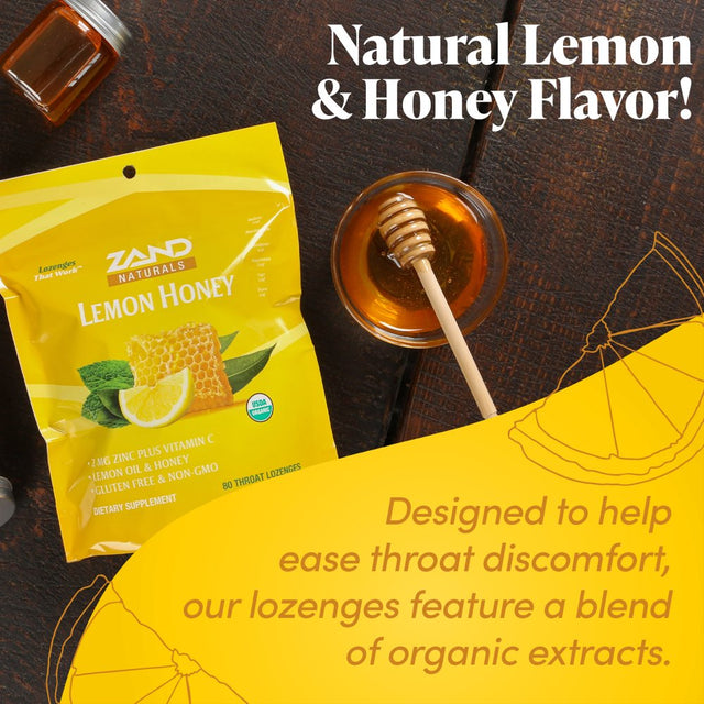 Zand founder, Dr. Janet Zand, formulated our Organic Lemon Honey HerbaLozenge by combining organic Honey and pure Lemon Oil with 67% the recommended daily allowance of Vitamin C, plus 2 mg of Zinc for healthy immune function support. A special blend of organic herbal extracts provides added support and is designed to help soothe and refresh your throat.