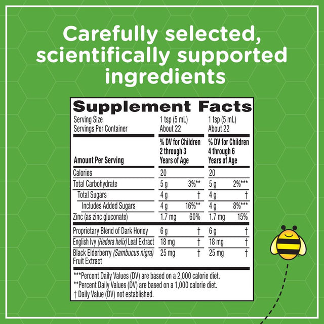 With Dark Honey, Ivy Leaf, Zinc & Elderberry, #1 Pediatrician Recommended, Drug & Alcohol-Free, Mixed Berry Flavor, 4FL Oz