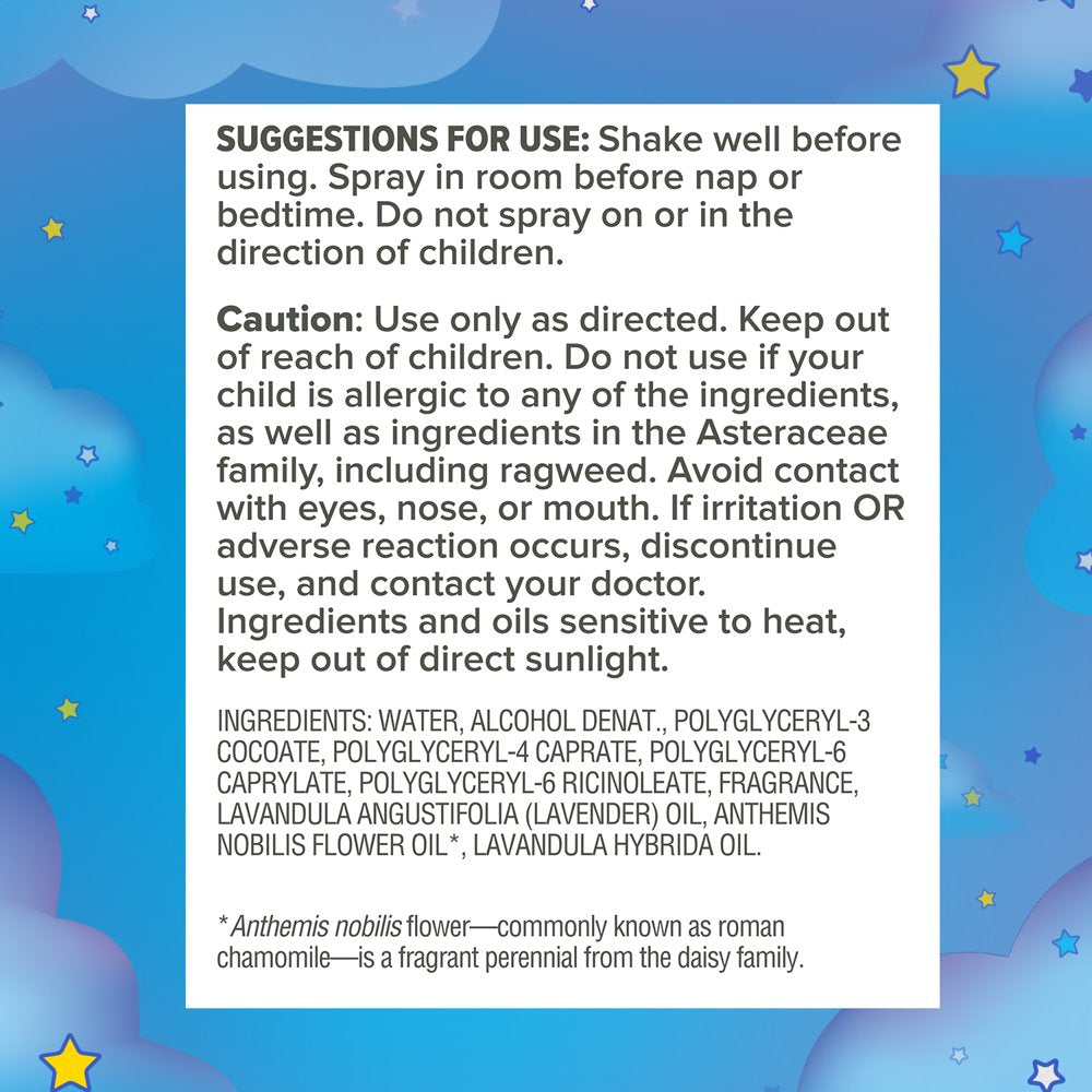 Zarbee's Gentle Bedtime room spray helps create a calming atmosphere for your kids as they transition from playtime to bedtime. Made with Chamomile and Lavender, the calming aroma of our room spray helps your child relax and get ready for bedtime*.lWith ingredients inspired by nature and backed by science, it's a safe and effective way to support the start of healthy bedtime routines. Our Chamomile & Lavender spray provides a calming aroma in the bedroom before bedtime. You can feel good about our ingredients that are free of artificial fragrances, parabens and petroleum. From Zarbee's, the #1 Pediatrician Recommended Sleep Support Brand for Children.