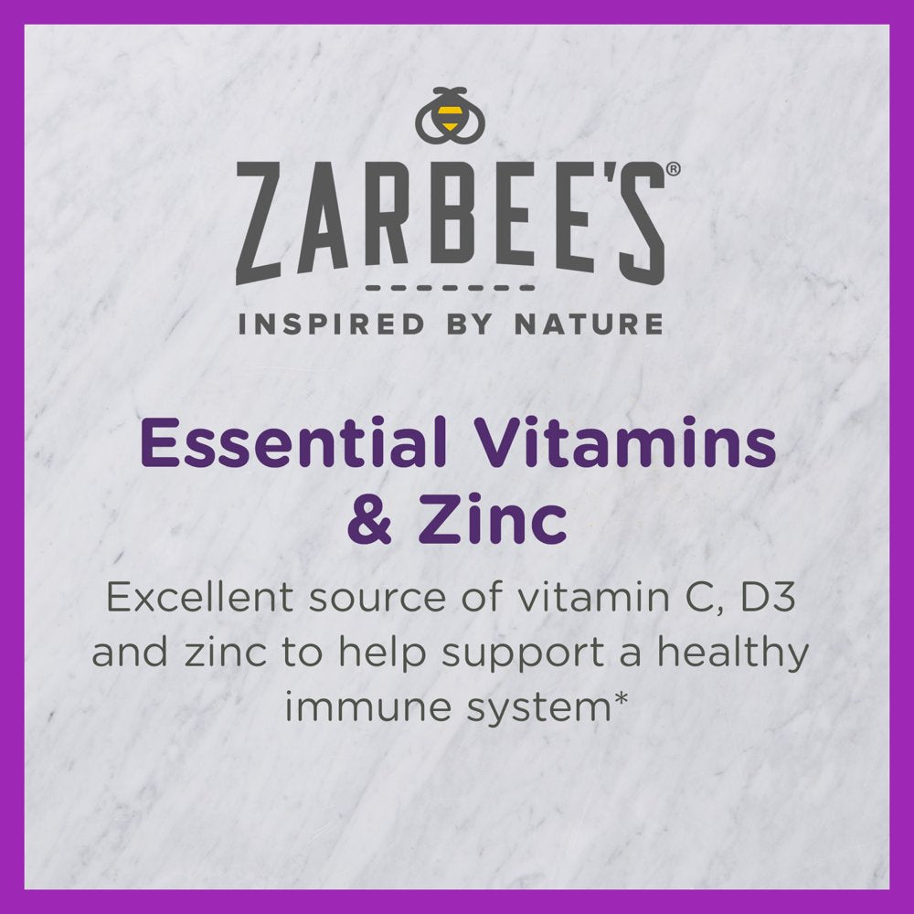 Zarbee's Kids Vitamin C, D & Zinc, Daily Immune Support SupplementZarbee's Kids Daily Immune Support* chewable tablets are an excellent source of vitamins C, D & zinc to support their immune system* all year long. Kids are constantly learning and growing, that’s why it’s important to provide them with the essential nutrition they need to help build a strong immune system.*Yummy Natural Tropical Fruit FlavorOne tablet provides kids 4 years and older with 20% of their daily value of vitamin C and 50% of vitamin D. Picky eaters? No problem! Your kids will love these delicious natural tropical fruit flavored chewable tablets.Allergy-Friendly IngredientsYou can feel good that they are made from carefully selected ingredients inspired by nature and backed by science - free of drugs, dyes, high fructose corn syrup & gluten. Formulated without milk, egg, fish, shellfish, tree nuts, wheat, peanuts, soy or sesame. Zarbee’s was founded by a pediatrician and is the #1 Pediatrician Recommended Immune Support Brand for Children.*These statements have not been evaluated by the Food and Drug Administration. This product is not intended to diagnose, treat, cure or prevent any disease.
