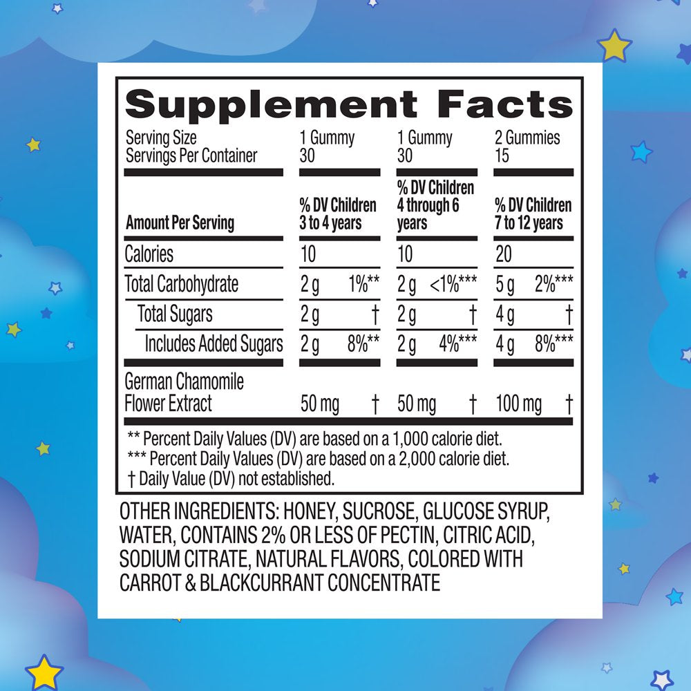 Zarbee's Gentle Bedtime Melatonin-Free Gummies for KidsZarbee's Gentle Bedtime helps calm your child as they transition from playtime to bedtime*. This easy-to-chew, non-melatonin bedtime support is made with natural chamomile, known for it's calming benefits.Allergy-Friendly IngredientsWith ingredients inspired by nature and backed by science, it's a safe and effective way to support the start of healthy bedtime routines. You can feel good about our ingredients that are free of drugs, artificial sweeteners or flavors, gluten, and gelatin. Formulated without milk, eggs, fish, shellfish, tree nuts, wheat, peanuts, soy, sesameYummy Natural Raspberry Lemon FlavorYour kids will love these delicious raspberry lemon flavored gummies, naturally sweetened with honey. From Zarbee’s, the #1 Pediatrician Recommended Sleep Support Brand for Children.*For occasional use only.*These statements have not been evaluated by the Food and Drug Administration. This product is not intended to diagnose, treat, cure or prevent any disease.