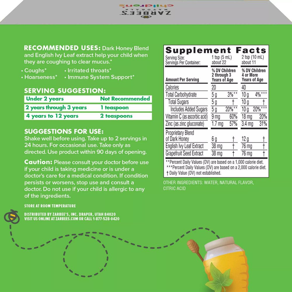 Zarbee'S Naturals Children'S Cough Syrup + Mucus with Dark Honey & Ivy Leaf, Natural Grape Flavor, 4 Oz Bottles (Pack of 3)