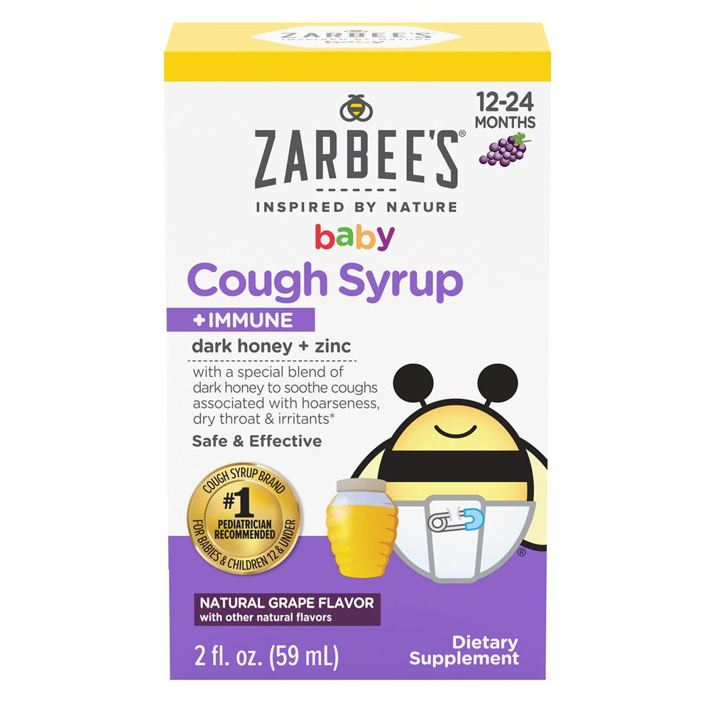 From the makers of the #1 pediatrician recommended cough syrup brand for babies and children under 10 years, Zarbee's Naturals Baby Cough Syrup + Immune with Dark Honey + Zinc gently calms & comforts baby's dry throat*. Made with a special blend of dark honey to soothe coughs associated with hoarseness, dry throat & irritants* and zinc to support the immune system*. This cough syrup is made without drugs, alcohol, artificial sweeteners, artificial flavors, dyes, or gluten.