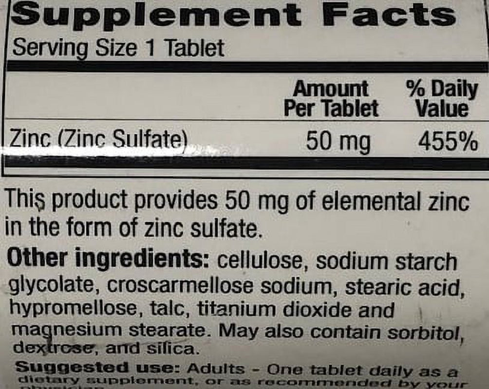 Zinc Sulfate 50Mg Equivalent to Zinc 220. 100 Tablets